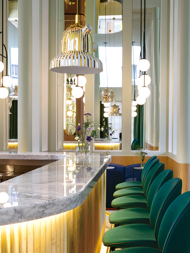 빛과 컬러를 다룬 방식은 3년 전 이곳은 칙칙한 지하감옥 같았어요. 따듯하고 밝은 빛으로 가득 채우고 싶었고, 로비 역시 휴식처 같은 공간이 되길 바랐죠. 그랑비아(Gran Via) 거리와 마드리드 왕궁(Royal Palace) 등 아름다운 시내 정경이 탁 트이게 보이는 커다란 조명 박스를 떠올렸어요. 박스 안은 생동감 넘치면서 많은 것들이 계속 변화했으면 했고요. 이를 위해 두 눈을 즐겁게 해주는 다채로운 컬러를 썼어요.