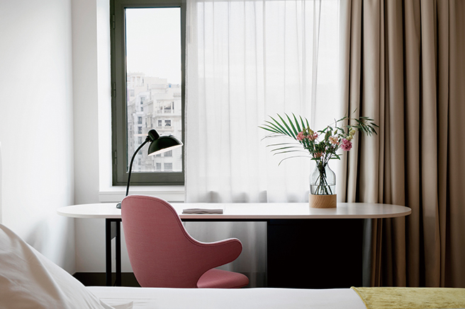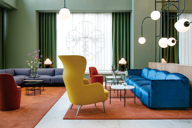 앤트래디션의 ‘캐치’ 체어, 프리츠 한센의 ‘파운’ 소파 등으로 꾸민 객실.