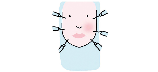 시술 소개 보톨리눔 독소를 진피에 주입, 피부를 리프팅해 준다(근육에 주입해 이를 마비시키고 근육의 볼륨을 줄여주는 보톡스와 목적이 다르다). 헤어 라인이나 이마, 눈가, 턱 등 리프팅이 필요한 피부에 촘촘히 주사하는 방식.