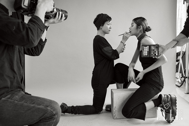 메이크업을 하면서 가장 중점을 두는 부분 아무래도 화보 작업을 많이 하다 보니 전체적으로 ‘어떤 여자’의 상(象)을 만들어야 한다고 생각한다. 또 다른 하나는 메이크업하는 대상이 갖는 유일무이한 매력을 덮지 않는 것. 아무리 피부 표현이 중요하더라도 본래의 피부를 가리고 새로 만드는 것이 아니라 그 사람이 가지고 있는 피부 결이 투영되도록 말이다.