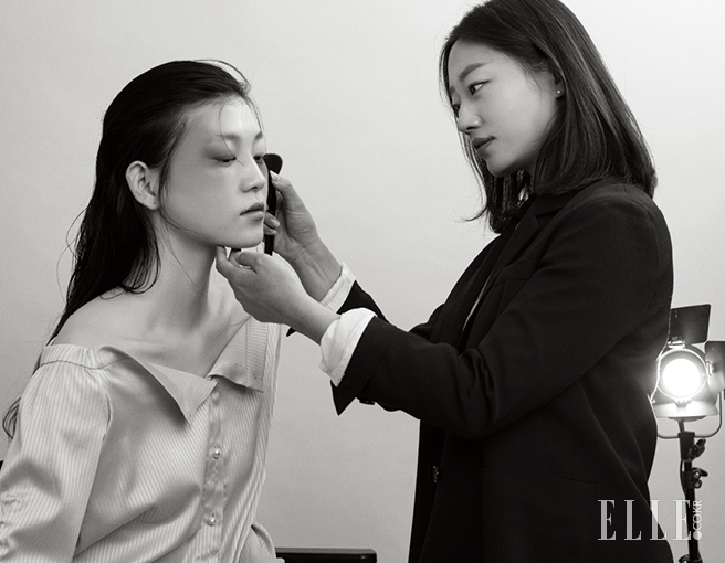 메이크업을 하며 특히 중점을 두는 부분 커뮤니케이션. 대화를 통해 원하는 모습인지, 고민은 무엇인지 파악할 수 있거든. 그러면 자연스럽게 단점을 장점으로 승화시키는 방법을 찾게 된다. 아이유의 경우 코도 동그랗고 귀여운 인상인데 이를 날카롭게 연출하는 대신 장점으로 부각시켰고, 도톰한 설리의 입술은 얇게 만드는 대신 오버사이즈로 더욱 강조하는 식이다.