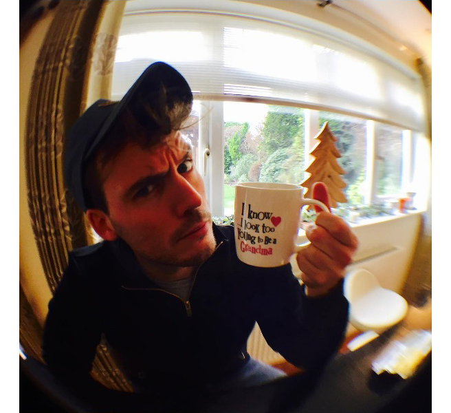 카메라 불이 꺼지고 난 후에 샘 클라플린의모습은 귀여워서 볼을 꼬집어 주고 싶은 소년처럼 장난꾸러기였다. 천진난만하게 웃으면서 장난 치는 셀피들이 그의 인스타그램에 넘쳐난다. 특히 반려견과 오래된 ‘절친’처럼 지내는 모습에 나도 모르게 번지는 엄마 미소.
