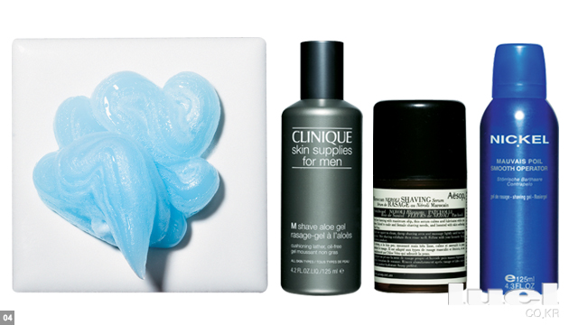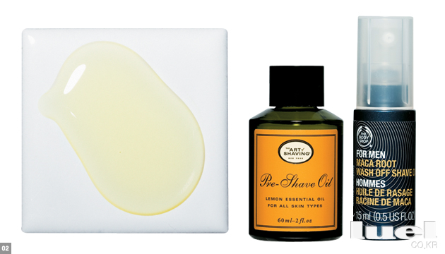 지성 피부가 사용하면 좋을 알로에 성분이 함유된 오일 프리 타입 쉐이빙 젤. SSFM M 쉐이브 알로에 젤 125ml 3만2천원 크리니크 수분 함유량이 높은 알로에 베라 성분이 피부에 수분을 공급하고 부드러운 면도를 가능하게 한다. 모로칸 네롤리 쉐이빙 세럼 50ml 5만9천원 에이솝 생강 추출물이 면도를 쉽게 할 수 있도록 수염을 빳빳하게 세워 준다. 스무드 오퍼레이터 125ml 2만원 니켈
