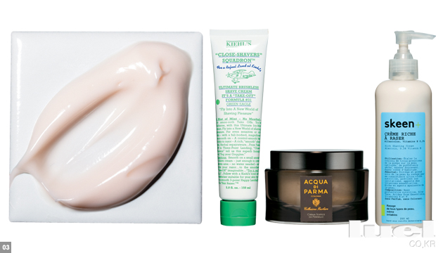 3 Cream 로션을 연상케 하는 크림 타입 쉐이빙 제품은 폼이나 젤 타입 제품처럼 거품이 풍부하게 발생하진 않지만 피부 밀착도가 높고 매끄러운 감촉으로 자극 없이 순하게 면도할 수 있는 것이 특징이다. 단, 로션을 바르던 습관 때문에 한번에 많은 양을 사용할 수도 있으니 소량으로 얇게 펴 바를 것.