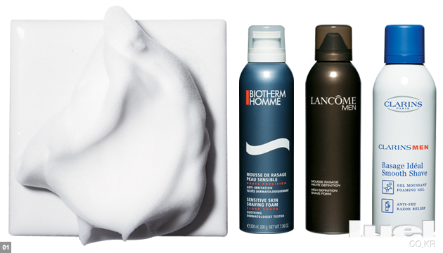 순수 플랑크톤 성분이 함유되어 면도 시 생긴 피부 자극을 빠르게 진정시켜주는 효과를 지녔다. 센스티브 스킨 쉐이빙 폼 150ml 3만4천원 비오템 옴므 풍부한 거품이 생성되어 수염을 면도하기 좋은 부드러운 상태로 만들어 준다. 하이 데피니션 쉐이브 폼 200ml 3만6천원 랑콤 맨 푸른 젤 타입이지만 피부에 닿으면 거품으로 변한다. 무알콜 성분으로 만들어져 면도 후에 화끈거림이 적다. 스무스 쉐이브 150ml 3만원 클라란스 맨 |