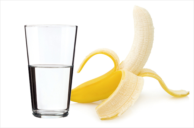 운동하기 30~45분 전, 몸에 좋은 탄수화물 간식(바나나 반쪽과 물 0.5ℓ)을 소량 섭취한다. 물은 단숨에 마시기보다 조금씩 쉬어가면서 한 모금씩 홀짝이듯 마신다. 땀이 많이 나는 운동일 경우 전해질 보충제를 챙긴다.