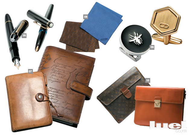 1 알프레드 던힐 타이핀 (Old-우) 1980년대 알프레드 던힐의 타이 핀이다. 던힐의 제품임을 알려주는 소문자 ‘d’가 심플하게 새겨져 있다. 지금은 잘 사용하지 않는 핀 타입의 디자인이 색다른 재미를 준다. (New-좌) 알프레드 던힐의 크리에이티브 디렉터 킴 존스는 던힐의 옛 아카이브에서 찾아낸 빈티지 로고를 사용한 제품을 선보였다. 마치 왕가의 문장 같은 이 로고는 알프레드 던힐의 첫 런던 매장에서 간판으로도 사용했다고. 빈티지 로고가 사용된 타이 바 26만원 알프레드 던힐