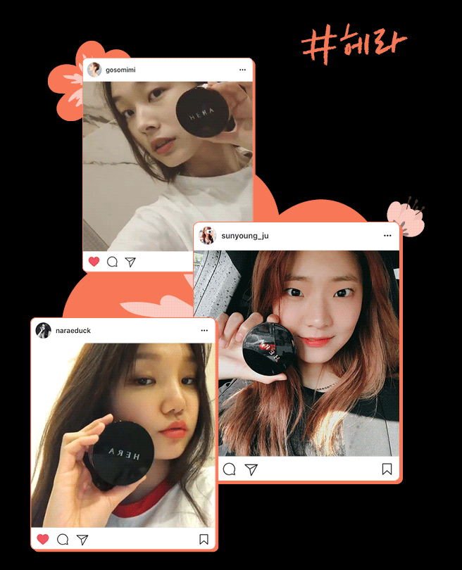 모델들의 SNS에서도 헤라 블랙 쿠션의 목격담이 끊이지 않고 있다. 모델 고소현은 개인 인스타그램에서 블랙 쿠션을 매일 사용하는 인생템이라고 밝히는가 하면, 모델 김나래는 엄청난 커버력과 지속력을 경험해보고 몇 년간 쓰던 쿠션에서 블랙 쿠션으로 갈아탔다고 고백하기도 했다. 모델 주선영은 쇼에 설 때도 블랙 쿠션 하나면 충분하다며 애정을 드러냈다. 이처럼 헤라 블랙 쿠션에 모델들의 애정공세가 쏟아지고 있는 이유는 블랙 쿠션이 가지고 있는 특별한 매력 덕분.