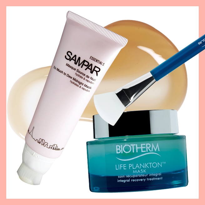 (왼쪽부터) 부드러운 실리콘 재질의 스파 브러시가 전문가의 손길처럼 느껴진다. 젤 텍스처가 피부를 빈틈없이 코팅하는 라이프 플랑크톤™ 인텐스 스파 마스크, 5만9천원대, Biotherm. 브러시가 장착된 형태라 골고루 바르기 좋다. 쏘머치 투 듀 미드나잇 마스크, 6만원, Sampar.