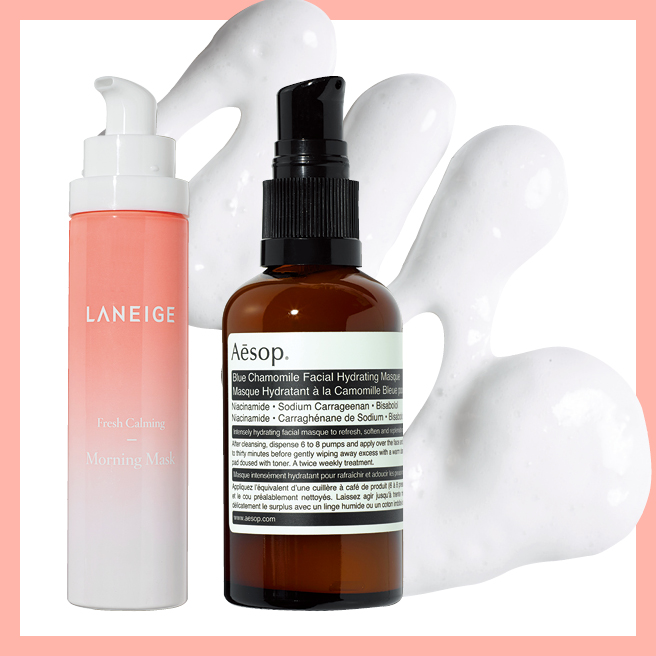 (왼쪽부터) 스르르 스며드는 에어 무스 제형. 헹궈낼 필요가 없어 간편한 프레시 카밍 모닝 마스크, 2만5천원대, Laneige. 시원한 풀 향기와 텍스처로 찌뿌드드했던 기분마저 상쾌해지는 블루 카모마일 페이셜 하이드레이팅 마스크, 6만9천원, Aesop.