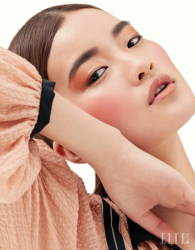 파운데이션 대신 소프트 매트 컴플리트 컨실러, 크렘 뷜레와 허니를 믹스해 발라 탄력 넘치는 매끄러운 피부를 연출. 콜라이너, 미노르크로 눈매에 꼭 맞는 블랙 아이라인을 그리고 샬롯 갱스부르 컬렉션 벨벳 듀오 아이섀도우, 올드 처치 스트리트의 골든 샴페인 섀도를 눈꼬리 중심으로 여러 번 덧발라 발색을 높인다. 샬롯 갱스부르 컬렉션 멀티플 틴트, 앨리스로 양 볼을 감싸듯 은은하게 물들여 양귀비빛으로 상기된 혈색을 강조한다. 마지막으로 초콜릿 브라운 컬러의 벨벳 매트 립 펜슬, 론리 하트로 립 라인을 따라 색을 입힌 뒤 핑크 베이지 색의 벨벳 매트 립 펜슬, 겟 오프로 경계가 지지 않도록 입술 안쪽까지 그러데이션한다. 사용 제품은 모두 Nars.