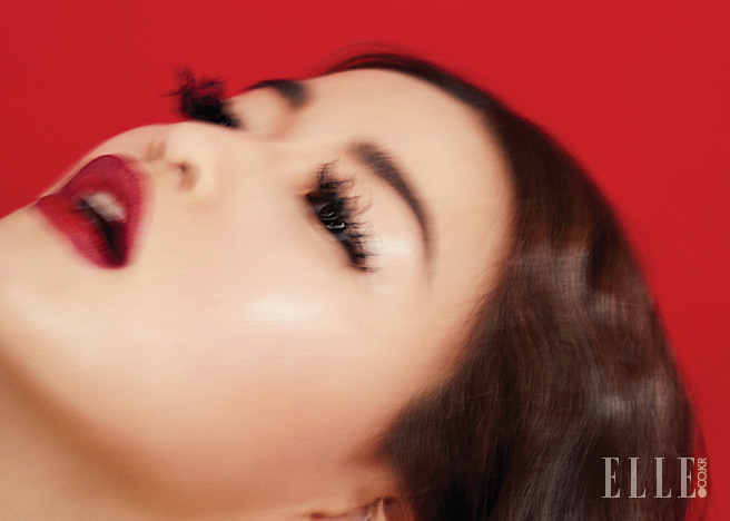 래디언스 프라이머SPF 35/PA???를 발라 광택을 주고 샬롯 갱스부르 컬렉션 멀티플 틴트, 조를 광대뼈 외곽 부분에 발라 윤곽을 살린다. 샬롯 갱스부르 컬렉션 벨벳 듀오 아이섀도우, 올드 처치 스트리트의 골든 샴페인 컬러를 눈꺼풀에 얇게 바르고, 레이스 실을 불로 살짝 그을려 거미줄처럼 만든 인조 래시를 붙여 살아 움직이는 듯한 속눈썹을 표현. 당돌한 레드 립은 벨벳 매트 립 펜슬, 드래곤 걸 위에 투명 립글로스, 트리플 엑스를 덧발라 완성한 것. 사용 제품은 모두 Nars.