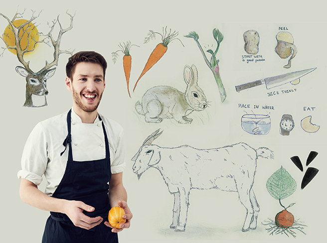 팝업 다이닝 때마다 조셉 셰프가 직접 그리는 디시 일러스트레이션. 그림을 배운 적도 습작해 본 적도 없던 그는 한국인에게 글보다 직관적인 방법으로 요리를 전달하기 위해 식재료와 요리법을 그리기 시작했다.