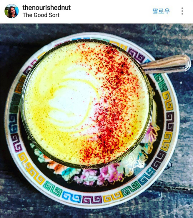 해외 인스타그래머들이 열광하고 있는 강황 라떼(Turmeric Latte). ‘강황’이 건강에 좋을 뿐만 아니라 다이어트에 효과적이라 빅토리아 베컴, 기네스 펠트로 등 해외 셀럽들도 즐겨마신다고. ‘골든 라떼’로도 불린다.