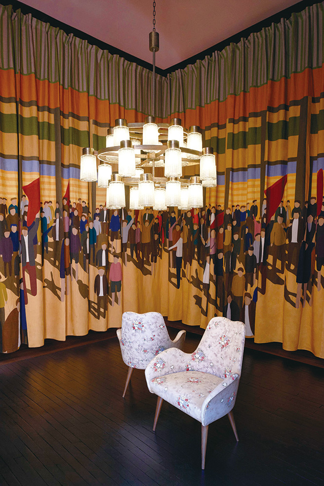 디모레 갤러리에 들어서면 현실세계와 완전히 분리되는 것을 넘어, 환각 상태인 누군가의 머릿속에 들어와 있는 기분이 든다. 만화경 내부와 같이 반복적인 기하학 패턴의 벽지 혹은 와인을 쏟은 얼룩처럼 번지는 조명빛 앞에 레트로와 빈티지 컬러가 변화무쌍하게 어우러진 가구들이 무심하게 놓여 있다. 올해 디모레의 환상은 환희로 가득 차 있었는지, 갤러리에는 사랑에 관한 온갖 올드 스쿨 팝이 고장 난 스피커를 통한 듯 웅웅 울려대고 무희들이 그려진 커튼이 휘날리는 등 몽환의 바다를 유영했다.