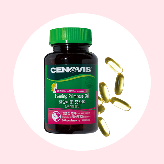혈액순환을 촉진해 월경전증후군 개선에 도움을 주는 달맞이꽃 종자유, 90캡슐 3만5천원, Cenovis.