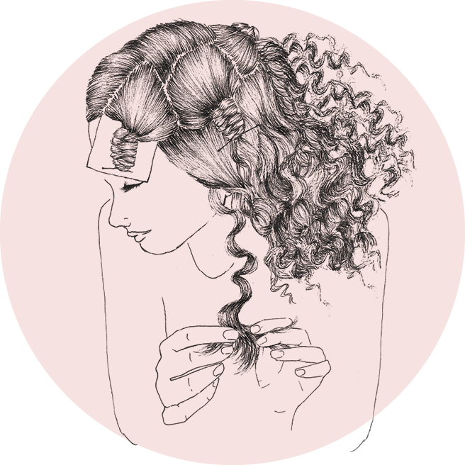 열 받은 모발을 30분간 식혀준 다음 타래를 하나씩 풀어준다. 손가락으로 모발을 구기면서 풀어주고 고정 스프레이를 뿌려주면 ‘스프링’ 효과가 배가된다. 손가락이나 굵은 빗으로 살짝 빗어주면 곱슬한 푸들머리 완성!