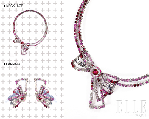 Enchanting EVA Necklace by Boucheron 전설적인 여배우 에바 가드너(Eva Gardner)를 기억하는가. ‘지구상에서 존재하는 것 중 가장 아름다운 동물’이라는 수식어가 늘 따라다녔을 정도로 할리우드 최고의 몸매와 여배우치고는 드물게 야성적인 매력을 발산했던 그녀는 당당하고 도도한 매력으로 스크린을 압도하는 카리스마를 가진 배우였다. 2002년 부쉐론에서 론칭한 아바 컬렉션은 그녀의 숭고하면서도 화려한 아름다움을 기리는 주얼리 라인으로 최고의 여배우로 칭송받던 그녀의 아름다움에 영감을 받아 디자인 된 후 지금까지도 꾸준히 출시되고 있는 부쉐론의 대표적인 하이주얼리 컬렉션 중 하나다. 원석을 통해 피부가 비춰 보이는 특수한 세팅 기법을 통해 빛을 순간적으로 흡수해 재반사시키는 아바 컬렉션만의 미학은 에바 가드너의 화려한 아름다움과 대담한 정신으로 대표된다. 2010년 부쉐론에서 새롭게 소개한 매듭형태의 유니크한 하이주얼리 라인인 누(Noued) 네크리스에도 아바 모티프가 사용되었는데 총 2.39 캐럿의 루비를 둘러싼 다이아몬드 파베 세팅은 센터 스톤을 더욱 크로 화려해 보이게 한다. 부쉐론 누 네크리스 가격 미정 화이트 골드 소재, 루이, 다이아몬드 세팅. |