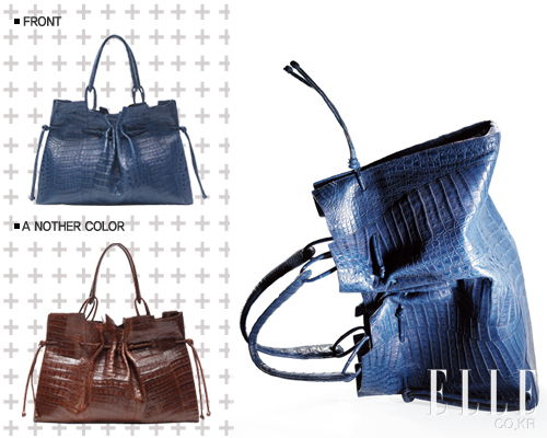 Very Exclusive Bag by Nacy Gonzalez 미국 드라마 <섹스 앤 더 시티>에서 콧대높은 커리어우먼 사만다의 자존심 수치를 최고조에 올려 놓은 것 중 빼놓을 수 없는 것이 바로 낸시 곤잘레스의 백. 최고급 소재만을 사용해 한가지 백을 40개 이상 생산하지 않는 낸시 곤잘레스의 백은 대중적이기 보다는 희소성을 추구하기에 ‘소수에게만 허락된 특별한 백’으로 통한다. 실제로 낸시 곤잘레스는 1980년부터 뉴욕 파크 에비뉴의 상류층에게 사랑받기 시작한 이그조틱 백 브랜드로 그 중‘드로우 스트링 백’은 주름과 매듭 장식 등 기존의 이그조틱 백이 표현하지 못했던 핸드 크래프트의 섬세한 디테일을 가미해 내추럴한 셰입을 살린 것이 특징이다. 금속 장식을 없애 백의 무게를 최소화 한 이 백은 무두질부터 태닝, 염색까지 장인들의 세심한 손길을 거쳐 완성한 진정한 익스클루시브 피스. 국내에는 네이비와 브라운, 그레이 컬러로 극소수만 바잉된다. 낸시 곤잘레스 드로우 스트링 백 \6,970,000, 엘리게이터 레더 소재, 42x29x14cm.