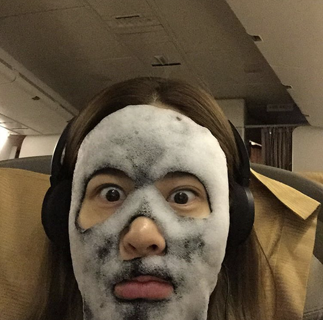 국내에서는 아이비도 버블 마스크를 붙여 후기를 남겼다. 아이비의 말대로라면 비행기안에서 관리 좀 해보겠다고 팩을 얹었는데 보글보글 거품이 올라왔더라는. 유쾌한 그녀답게 이 찰나의 순간을 셀카로 남겼다.