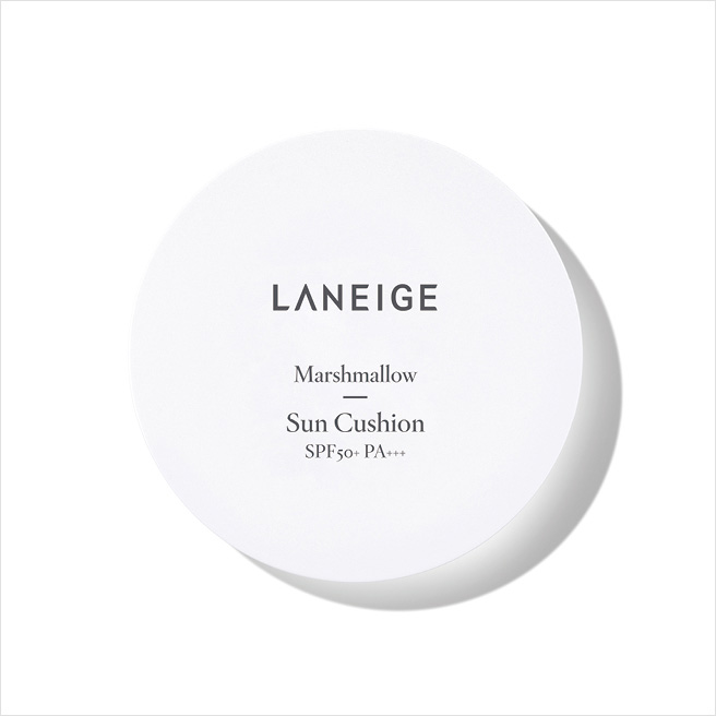 피부를 부드럽게 보호하는 무기 자외선 차단 성분의 마시멜로우 선 쿠션 SPF 50+/PA+++, 2만5천원대, Laneige.