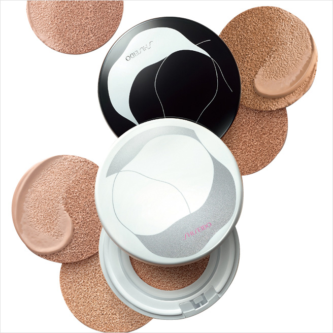 화사한 피부 톤과 보송한 마무리감이 특징인 싱크로 스킨 화이트 쿠션 컴팩트, 5만5천원, Shiseido.