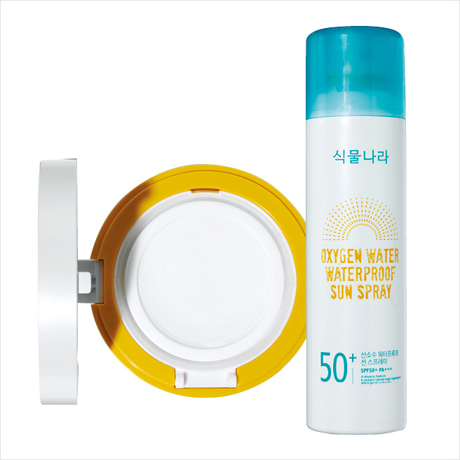 백탁 현상 없는 투명한 액상 미스트. 산소수 워터프루프 선 스프레이 SPF 50+/PA+++, 1만1천8백원, Shingmulnara.