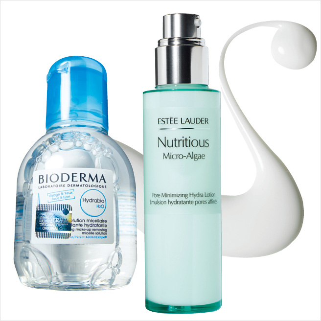 물처럼 가벼운 수분감을 지닌 유분 컨트롤 로션. 뉴트리셔스 마이크로 알게 포어 미니마이징 하이드라 로션, 6만3천원대, Este?e Lauder.
