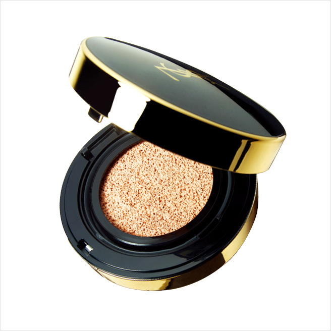 쿠션 특유의 과한 광택감이 없어 깔끔하게 덧바르기 좋은 르 쿠션 엉크르 드 뽀 SPF 23/PA++, 7만9천원, YSL.