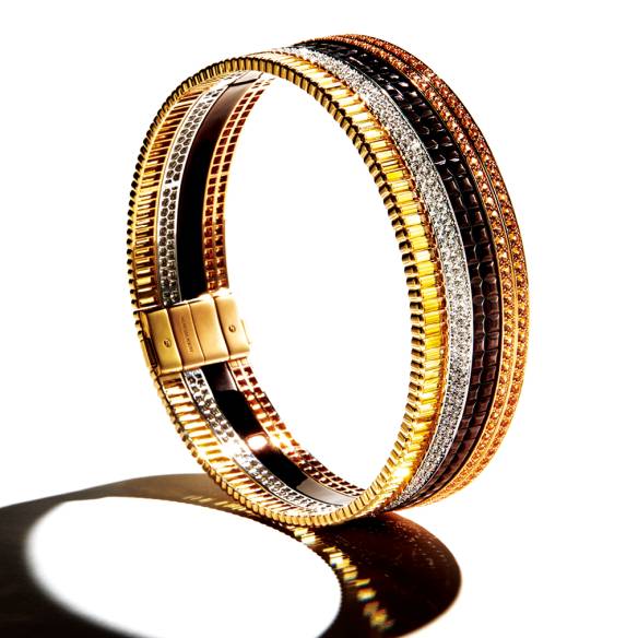 2 다이아몬드와 옐로 사파이어, 스페사르타이트 가넷이 찬란하게 빛나는 콰트로 클래식 뱅글.