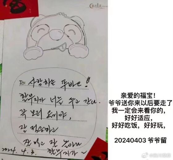 푸바오의 중국행에는 '강바오' 강철원 사육사도 함께했습니다. 강 사육사는 지난 2020년 푸바오가 태어날 때부터 지금까지 가까이에서 그를 돌봤던 만큼 푸바오와 각별한 사이로 알려져 있어요. 강 사육사가 푸바오에게 남긴 자필편지도 화제가 되고 있는데요. 편지에는 "할부지가 너를 두고 간다. 꼭 보러 올거야" 등 애정 가득한 내용이 담겨 눈길을 끌고 있습니다.