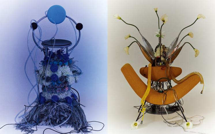 뚜따 하이백(서머헤이즈 컬러 테사 패브릭)은 4백42만원, Alloso. 톱과 스커트는 모두 Courreges. 이어링과 슈즈는 모두 스타일리스트 소장품.