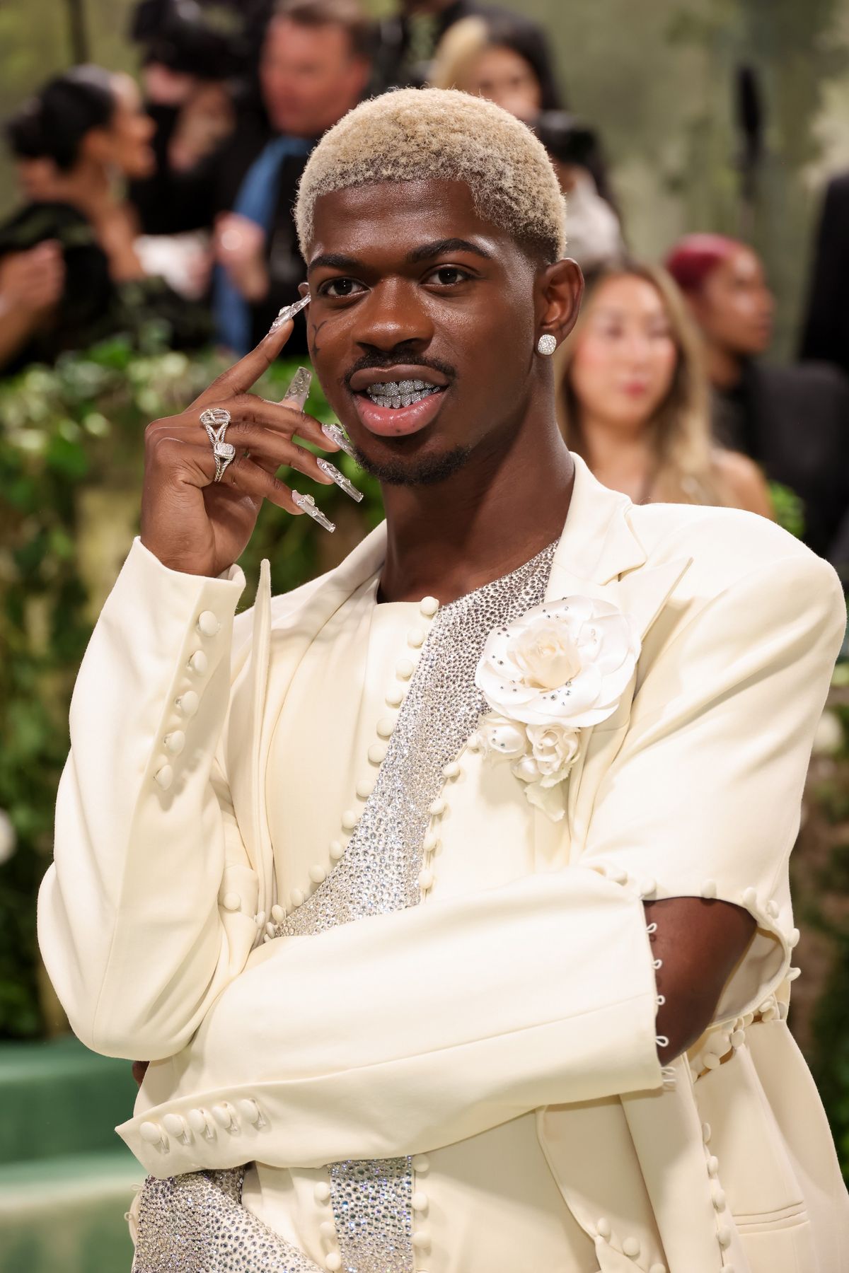 화끈한 룩으로 대중을 실망시킨 적 없는 릴 나스 엑스. 머리부터 발끝까지, 아니죠. 머리부터 발끝, 그리고 손끝까지는 신경 써야 그 답습니다. 5만개의 스와로브스키 크리스털로 드라마틱한 반짝임을 더한 오버사이즈 슈트를 차려입은 그는 의상의 콘셉트를 그대로 이어 스퀘어 모양의 투명한 연장 네일에 비즈를 장식해 포인트를 줬습니다. 슈트는 루아(Luar)의 디자인입니다. 릴 나스 엑스(Lil Nas X)