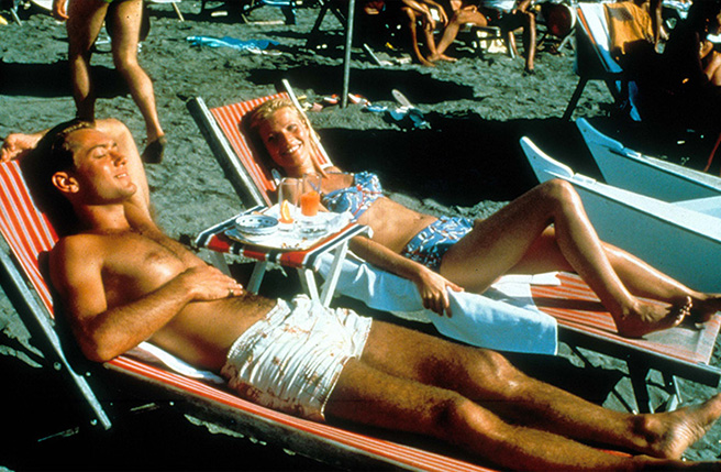 이탈리아 남부의 왁자지껄한 무드를 그대로 담은 화려한 프린트의 비키니. 남자친구를 따라 놀러 온 미국 상류층 걸, 마지(기네스 팰트로)를 완벽하게 만들어준 키 아이템이다. 기네스의 태닝된 피부 톤과 플로럴 프린트의 비치 웨어의 조화는 지금까지도 럭셔리 리조트 룩의 표본으로 회자되고 있다.