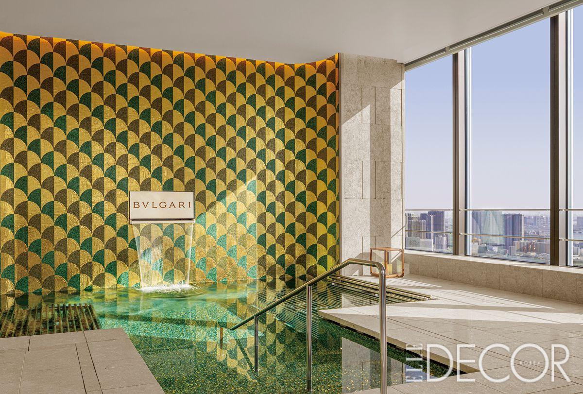지금 도쿄에서 가장 뜨거운 주목을 받는 호텔, 불가리 도쿄. 불가리의 유서 깊은 헤리티지를 어떻게 경험적 차원으로 표현했는지 궁금했다. 불가리 도쿄는 도쿄역의 고풍스러운 벽돌 건축물 뒤로 우뚝 솟은 도쿄 미드타운 야에스 빌딩 40~45층에 자리하고 있다. 도쿄의 럭셔리 호스피털리티 격전지라 할 수 있는 마루노우치-니혼바시 지역의 진정한 보석인 셈이다. 어두컴컴한 복도를 따라 로비에 이르면 이탈리아산 검은 화강암 바닥과 세이가이하몬(파도 문양) 패턴의 패브릭 월, 사원 지붕을 모티프로 한 천장 장식과 추상적인 꽃꽂이가 환상적인 동선을 이룬다. 유리 진열장에는 1972년 마운틴 후지 빈티지 브로치와 세르펜티 네크리스가 반짝이고, 커다란 흑백사진 속에는 1950년대의 전설적인 셀러브리티들이 비아 콘도티(Via Condotti)를 배경으로 불가리의 순간을 즐기고 있다.