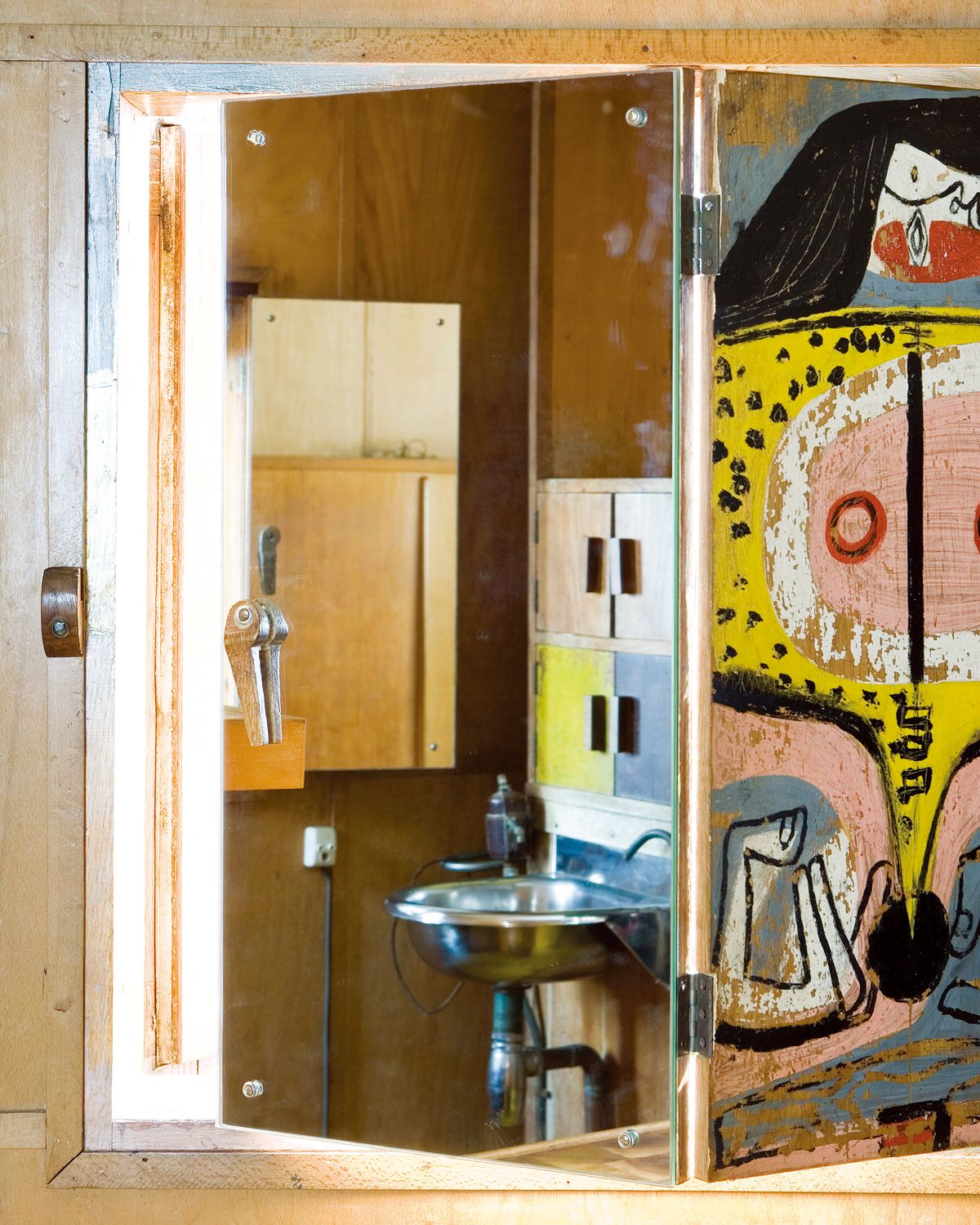“나는 프랑스 리비에라에 3.66m×3.66m 크기의 웅장한 집을 가지고 있다. 이곳은 아내를 위한 공간으로, 편안함과 친절함이 담겨 있다.” 복잡함에 주저하지 말고 단순함에 도달하라던 르 코르뷔지에의 건축 작업 중 ‘카바농’은 합리성과 기능성에 정점을 찍은 작은 집이다. 현대건축의 거장이 말년을 보낸 곳이라 하기에는 소박해 보이는 오두막이지만, 단순한 질서를 통해 자신만의 소우주를 창조한 집의 정수를 보여준다. 벽면과 천장을 가로지르는 격자를 따라 가구를 배치하고, 바닥과 천장에 컬러를 추가해 공간의 변주를 줬다. 어릴 때 꿈이 화가였던 르 코르뷔지에의 회화 작품도 활기를 더한다. 입구 복도의 벽에는 르 코르뷔지에의 벽화 작품 ‘토로(Taureaux)’가 그려져 있고, 두 개의 접이식 셔터 안쪽 면에는 아내 이본(Yvonne)에게서 영감받은 인물화를 그렸다. 르 코르뷔지에는 더할 것 없이 완전한 공간에서 아내 이본이 죽을 때까지 매년 여름 파리를 떠나 이곳에 머물렀다. 푸른 지중해가 한눈에 들어오는 네 평의 통나무집은 수영을 좋아하는 그에게 휴식과 사유를 위한 최고의 공간이었다.