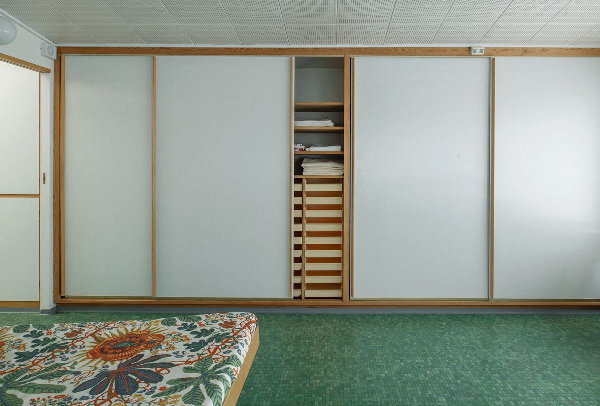 스웨덴 가구 디자이너이자 건축가 브루노 맛손의 ‘빌라 쇠드라쿨’은 1988년 그가 세상을 떠난 시점에 멈춰 있는 듯하다. 스토브와 디지털 알람시계, 비닐 레코드, 벽 전체를 가득 채운 많은 책 그리고 여전히 맛손이 앉아서 작업하고 있을 것 같은 작업대가 보존돼 있다. 스웨덴 베르나모(Va..rnamo)에 있는 별장은 유리벽과 반투명 아크릴판으로 천장을 시공해 실내외의 경계를 모호하게 만들었다. “우리에겐 가능한 한 많은 빛과 공기가 필요합니다. 그렇지 않으면 방치된 꽃처럼 시들어버리죠.” 빛을 사랑하는 맛손은 주변 자연과 친밀하게 연결될 수 있도록 집을 설계했다. 침실은 정원으로 바로 나갈 수 있도록 이어져 있으며, 음식을 즐기지 않았던 그는 별장 중앙에 작은 작업용 주방을 두었다. 에메랄드 색상의 모자이크 타일이 깔린 거실에서 직접 디자인한 체어 ‘페르닐라(Pernilla)’에 앉아 환상적인 호수 전망을 감상하던 맛손이 눈에 그려진다.