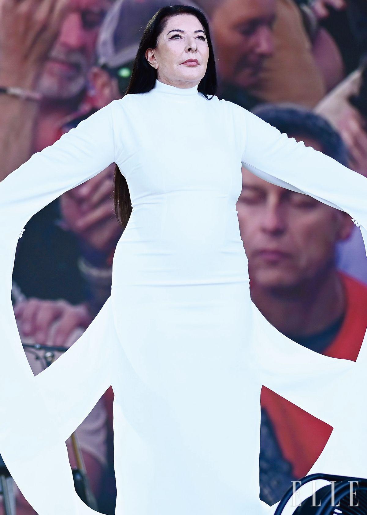 유럽 최대 규모의 뮤직 페스티벌인 글래스턴베리에 420초간 묵념이 이어졌다. 바로 행위예술의 대가 마리나 아브라모비치가 무대에 등장해 ‘평화’에 대한 퍼포먼스를 선보였기 때문. 그는 리카르도 티시가 디자인한 드레스를 입고 자신만의 방식으로 평화를 외쳤다. 보디 아트, 여성주의 예술, 신체의 한계, 정신의 가능성을 탐구하는 행위예술가인 마리나 아브라모비치. 신체적 위험을 감수하는 과감한 퍼포먼스를 40년간 이어온 그는 현존하는 가장 도발적인 아티스트다.