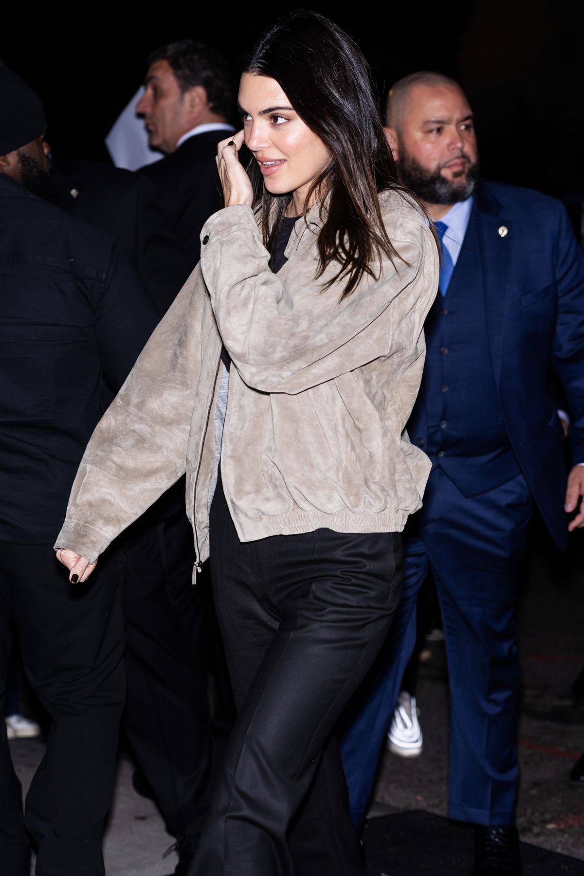 켄달 제너의 최애 아우터도 스웨이드 재킷임이 틀림없는 듯합니다. 회색빛이 도는 피스부터 초콜릿 브라운 컬러의 재킷까지! 포멀한 블랙 룩은 물론 크롭 탱크톱, 부츠컷 레깅스 스타일과 자유자재로 매치하는 센스를 보여주고 있어요.