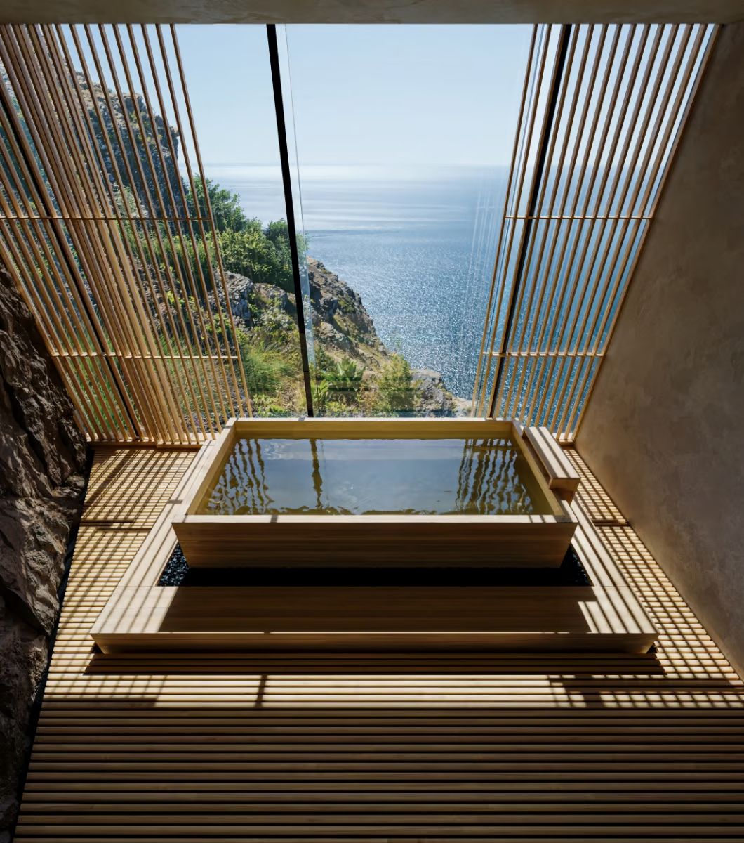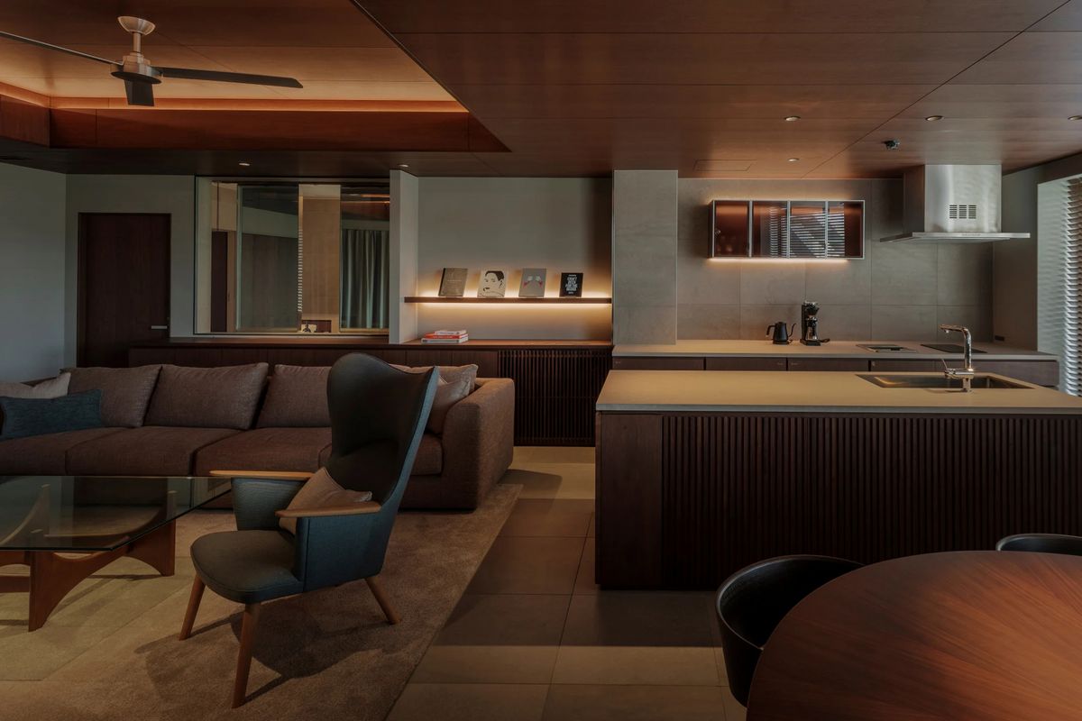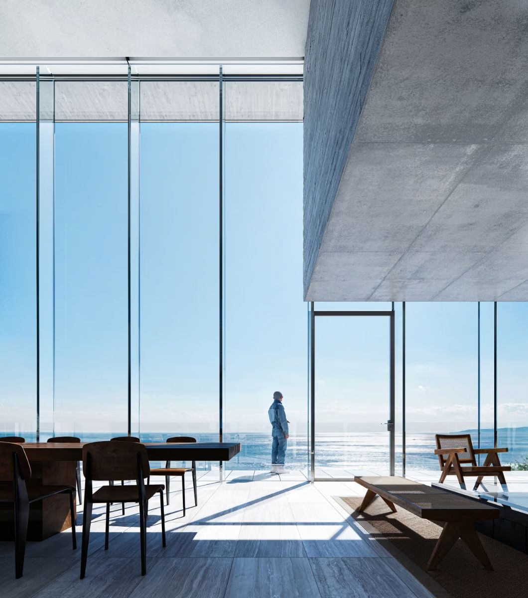 바닥부터 천장까지 통창으로 이뤄져 있는 거실. 태평양을 한 눈에 담을 수 있고 맑은 날에는 후지산을 바라보며 커피를 즐길 수 있습니다. 거실은 니고가 가장 좋아하는 두 거장 디자이너, 장 프루베(Jean Prouvé)와 피에르 잔느레(Pierre Jeanneret)의 묵직한 빈티지 가구들을 비치할 예정이라고 하는데요. 인테리어 매거진 속 한 장면을 그대로 옮겨 놓은 것처럼 아름답습니다.