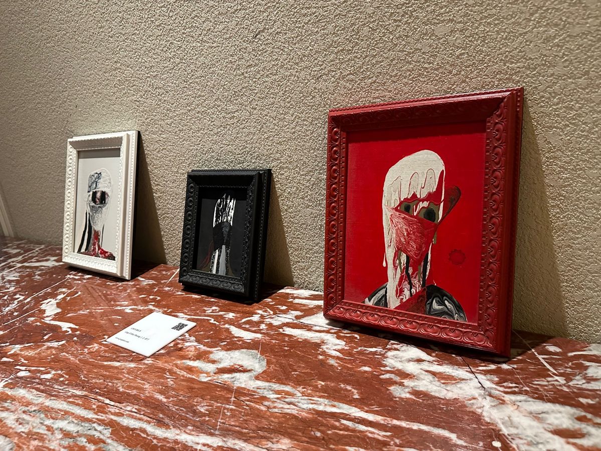 지드래곤이 그간 솔로로서, 그룹으로서 내놓은 음반과 관련한 작업들도 보입니다. 2017년, 솔로 앨범 <권지용>을 만들며 그린 <Middle Fingers Up. 2019>이 드디어 실물로 공개됐습니다. 이 작품은 '피스마이너스원' 웹사이트 론칭 당시 배경으로 사용된 2개의 이미지 중 하나였는데요. 아크릴, 스프레이 페인트 및 캔버스의 콜라주로 구성돼 지드래곤의 광범위한 예술적 반경을 짐작케 했습니다. 또 <쿠데타> 앨범 재킷에 사용하기 위해 OWVBICS에게 의뢰했던 복면 이미지들도 반갑게 다가오는군요.
