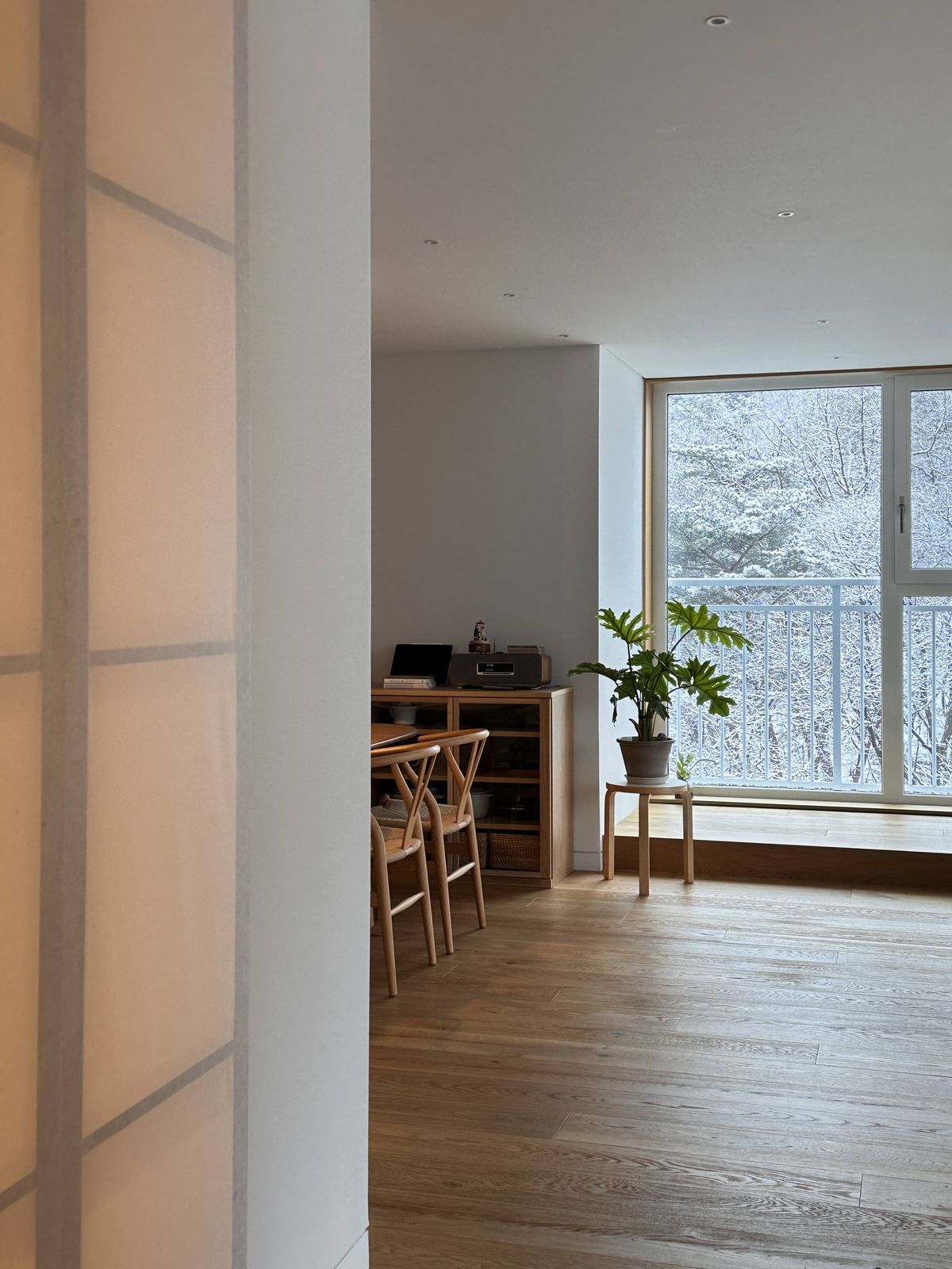 이 접이식 도어를 일본 스타일로 느끼시는 분들이 꽤 계신데요. 일본 인테리어에 관심도 많고, 일본 여행도 좋아하는 편이긴 하지만 료칸 분위기를 내기 위해 설치한 건 아니에요.