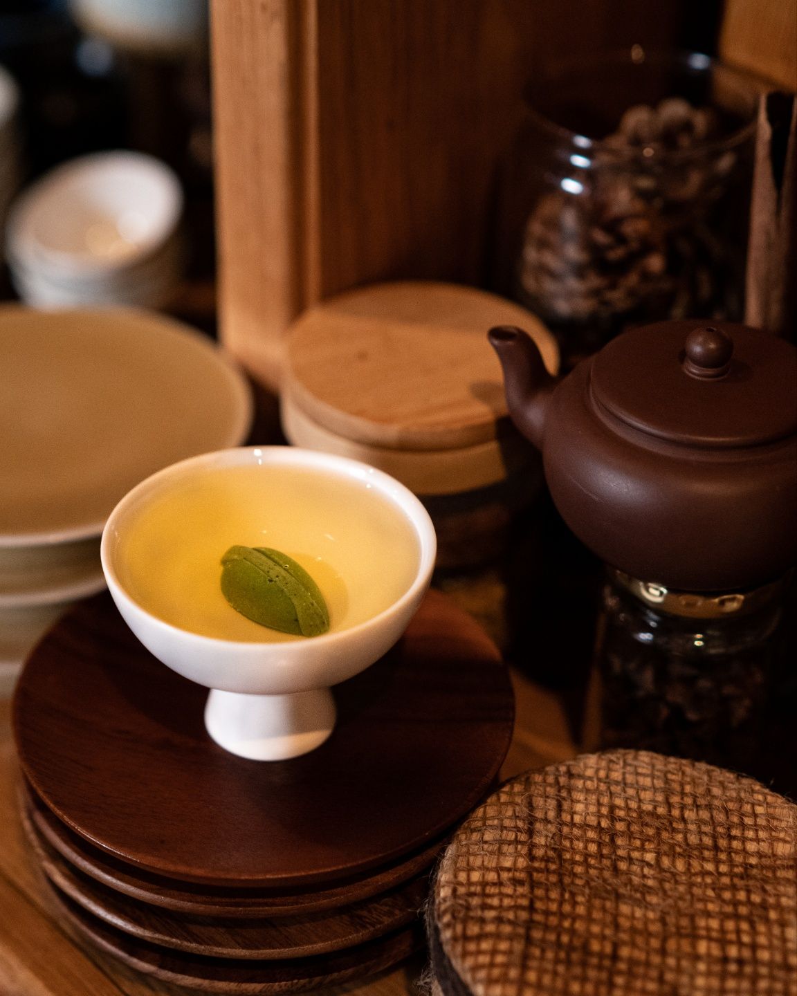 바 참에서 ‘송편’ 칵테일을 주문해 마시면 다들 같은 반응을 보인다. “어머, 진짜 송편 맛이네”라고. 그야말로 송편의 액체 버전이라 불러도 좋겠다. 물론 알코올이 은은히 들어간. 사시사철 인기 있지만 특히 추석이 다가오면 더욱 많이 찾는 송편은 우리나라의 증류식 소주 ‘풍정사계 동’과 밤을 넣고 증류한 ‘왕율주’에 쑥, 참기름의 풍미를 담아낸 후 밀크 워시드를 통해 투명하게 만든 디저트 타입의 칵테일이다. 아담한 백자에 담겨 나온 송편을 한 모금 머금으면 송편의 부드럽고 달콤한 풍미가 혀에 천천히 스며들면서 외갓집에 온 듯 마음이 포근해진다. 술이 줄 수 있는 가장 온온한 맛이랄까. 투명한 음료에 송편을 꼭 닮은 가니시가 담겼는데, 이는 쑥을 넣고 만든 가나슈를 감싼 흑임자 초콜릿. 칵테일을 다 마시고, 초콜릿을 베어 무는 순간, 또 같은 반응을 보이게 된다. “어머, 이것도 진짜 송편 맛이네”라고. 송편을 마시고, 보다 더 짙은 가을의 맛을 즐기고 싶다면, 동명의 영화에서 영감을 받아 개발한 ‘만추’를 이어 마셔보자. 쿰쿰한 버섯 향이 깊은 가을 숲에 온 듯 마음을 그윽하게 만든다.