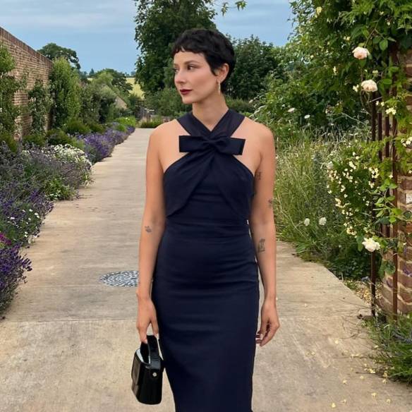 브라운 스웨이드 재킷은 Nothing Written. 이너 슬리브리스는 Toteme. 블랙 롱 스커트는 Johnny Hate Jazz. 슈즈는 스타일리스트 소장품.