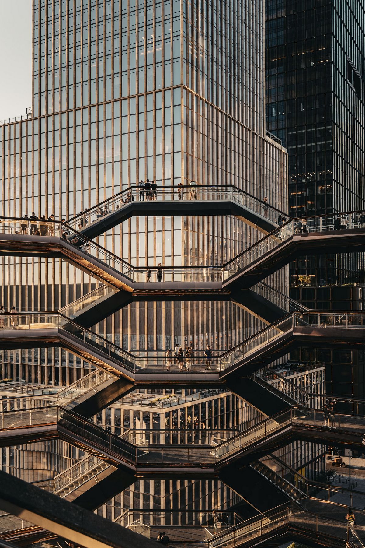 벌집 모양의 상징적인 이 건축물은 뉴욕 '리틀 아일랜드'와 상하이 '1000개의 나무'를 설계한 거장 토마스 헤더윅의 작품입니다. 2010년대 맨해튼에선 복합 문화공간인 허드슨 야드를 재개발하는 프로젝트가 진행되고 있었습니다. 개발사가 변혁적이고 기념비적인 랜드 마크를 고민하던 중, 컨셉을 실현시킬 건축가 토마스 헤더윅을 만나게 되죠. 토마스 헤더윅은 고대 인도의 지하 계단 우물에서 영감을 받아 2500개의 계단과 16층 높이의 압도적인 전망대를 설계했습니다.