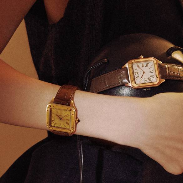 화이트 골드 소재의 ‘팬더 드 까르띠에’ 이어링은 가격 미정, 검지에 착용한 ‘팬더 드 까르띠에’ 링은 2천3백만원대, 약지에 착용한 화이트 골드 소재의 ‘에크루 드 까르띠에’ 링은 3백만원대, 베젤과 다이얼에 다이아몬드를 세팅한 ‘발롱 블루 드 까르띠에’ 워치는 1천9백만원대 모두 CARTIER.
