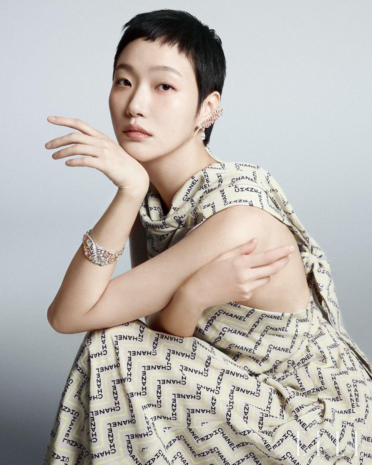 18K 핑크골드와 플래티넘에 다이아몬드와 핑크 사파이어를 세팅한 플륌 드 샤넬 2024 하이 주얼리 컬렉션 이어링, 18K 핑크골드와 플래티넘에 다이아몬드와 핑크 사파이어를 세팅한 플륌 드 샤넬 2024 하이 주얼리 컬렉션 브레이슬릿은 모두 Chanel High Jewelry.