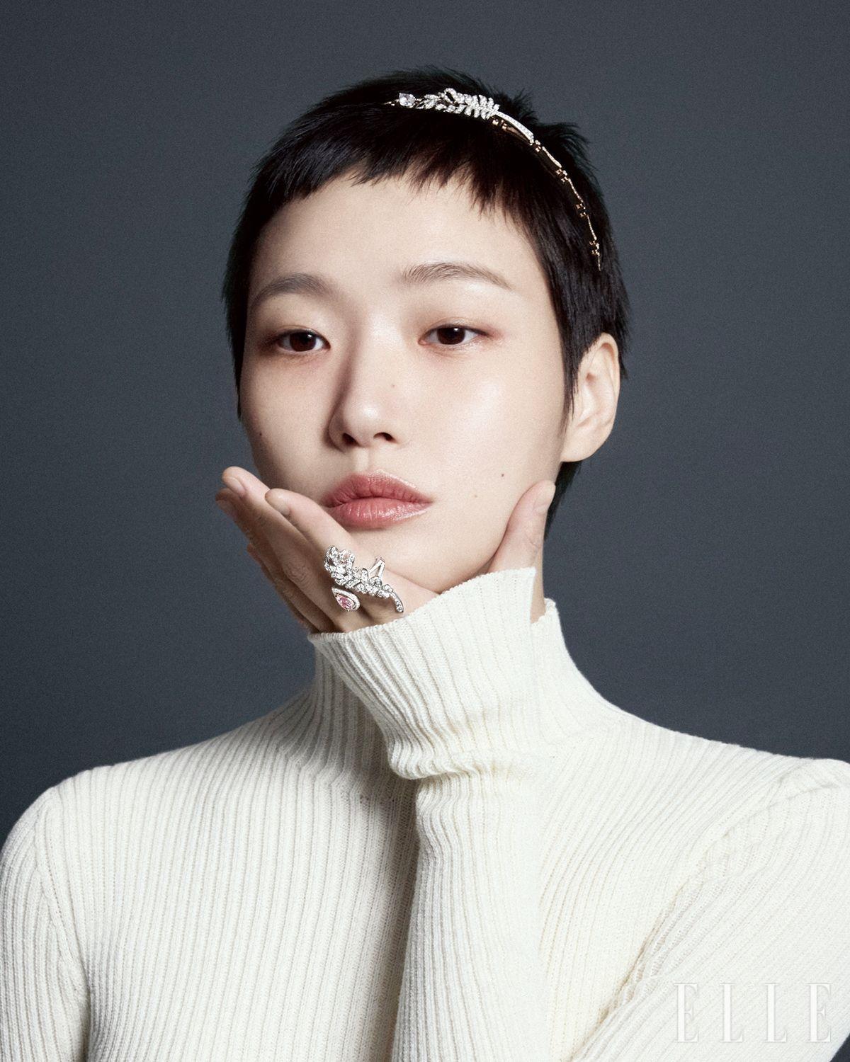 18K 화이트골드에 다이아몬드를 세팅한 플륌 드 샤넬 2024 하이 주얼리 컬렉션 네크리스와 18K 화이트골드에 다이아몬드를 세팅한 플륌 드 샤넬 2024 하이 주얼리 컬렉션 링은 모두 Chanel High Jewelry.