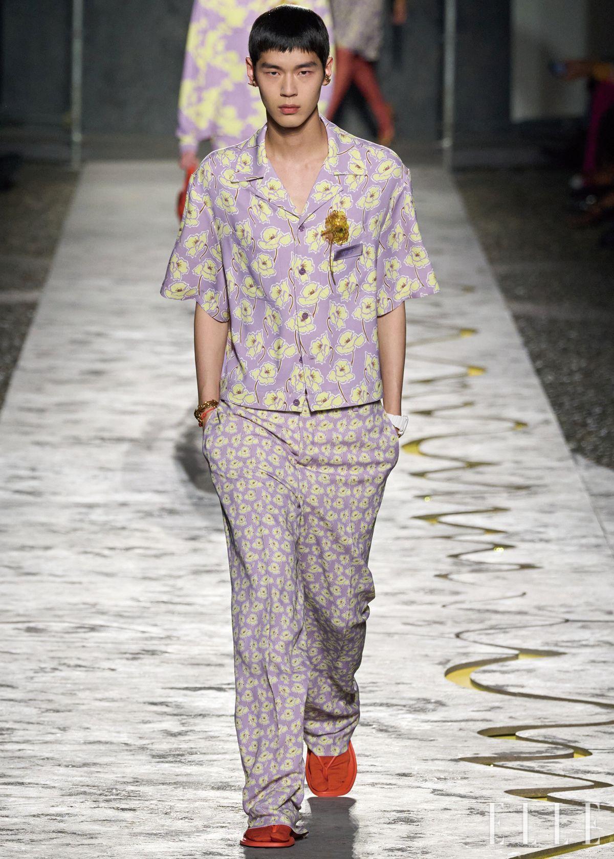 편안하면서도 컬러플한 파자마 룩을 선보인 Versace.