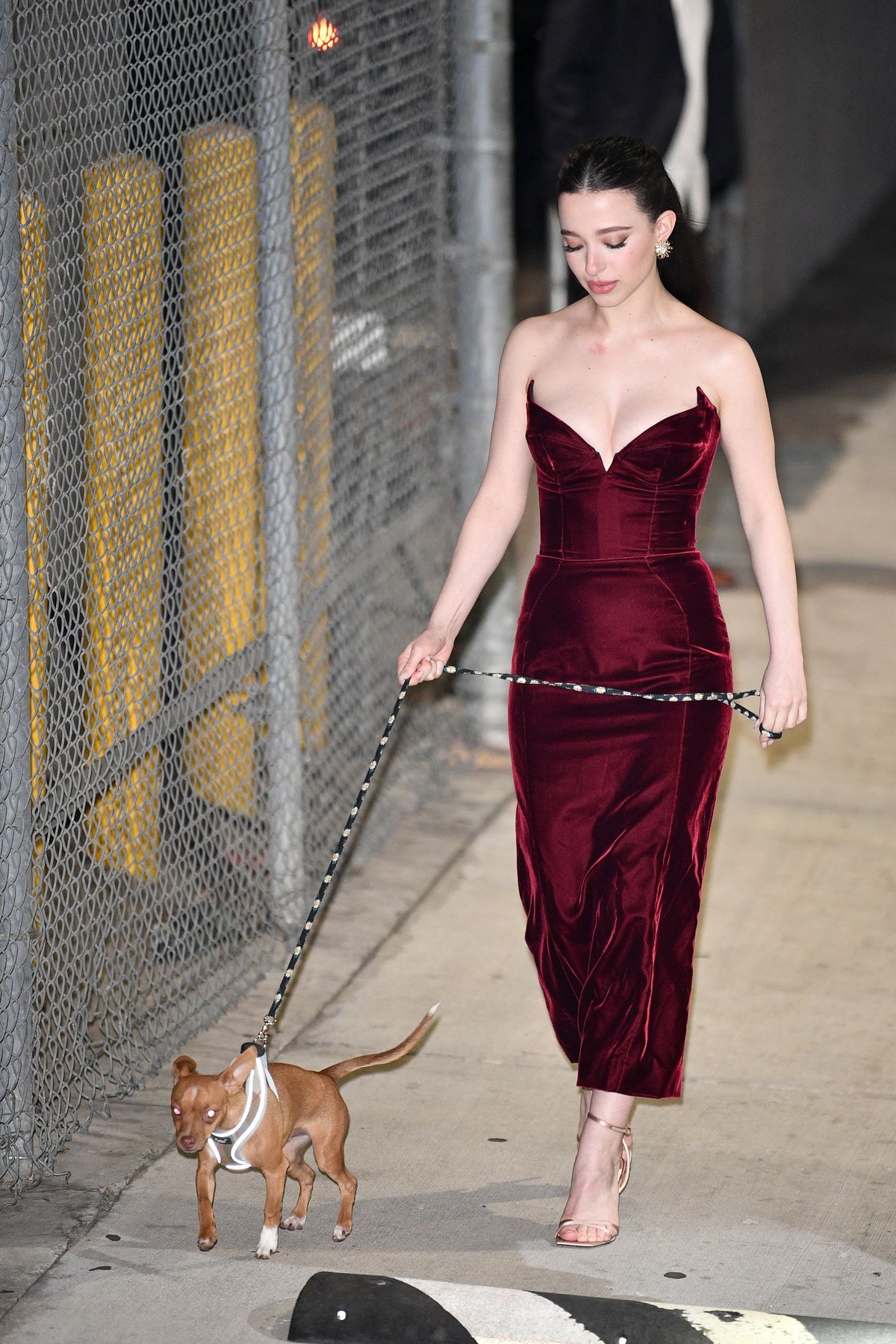 에밀리가 성실한 도그워커라면 마이키 매디슨은 광기의 도그워커입니다. 뮈글러의 우아한 버건디 벨벳 미디 드레스를 차려입은 그에게 지금 이 순간 무엇보다도 중요한 건 예쁜 옷도, 화려한 조명도 아닌 반려견과 함께하는 산책 시간이죠.